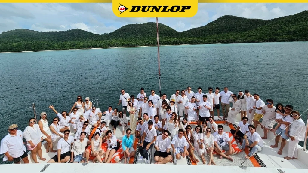 บริษัท ดันลอป ไทร์ (ไทยแลนด์) จำกัด นำโดยคณะผู้บริหาร และพนักงาน จัดทริปท่องเที่ยวพาร้านค้าตัวแทนจำหน่าย ยางรถยนต์ ดันลอป ในกลุ่ม Young and Middle-aged ล่องเรือยอรช์ส่วนตัว พร้อมเพลิดเพลินไปกับขนม เครื่องดื่มและ ดนตรี ก่อนจะนำเรือไปจอด ถ่ายภาพ และเล่นกิจกรรมทางน้ำไม่ว่าจะเป็น ดำน้ำ ตกปลา เล่นสไลด์เดอร์ เล่น SUP Board พายเรือ และ ว่ายน้ำกันที่ เกาะคราม จ.ชลบุรี เมื่อวันที่ 23 พฤษภาคม 2567 ที่ผ่านมา ปิดท้ายงานด้วยการรับประทานอาหารเย็นร่วมกันในช่วงเย็น ณ ห้องอาหาร RIVA ภายในโรงแรม Ocean Marina Resort Pattaya บรรยากาศในงานเต็มไปด้วยรอยยิ้มแห่งความสุข สนุกสนานระหว่างผู้บริหาร พนักงาน และร้านค้าตัวแทนจำหน่ายตลอดทริปนี้