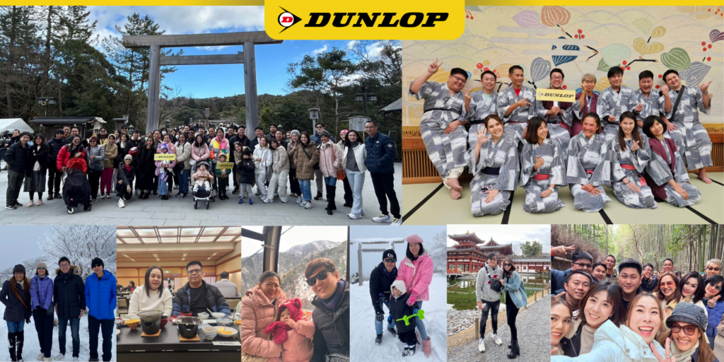 บริษัท ดันลอป ไทร์ (ไทยแลนด์) จำกัด นำโดยทีมคณะผู้บริหาร พาร้านค้าตัวแทนจำหน่ายดันลอปช็อป ท่องเที่ยว ณ นาโกย่า-เกียวโต-โอซาก้า ประเทศญี่ปุ่น ระหว่างวันที่ 25-30 มกราคม พ.ศ. 2567 ทริปนี้ดันลอปพาไปสัมผัสความหนาวแบบฟินๆ เริ่มด้วยการแวะทานเนื้อมัตสึซากะ เนื้อคุณภาพสูงของญี่ปุ่น ต่อด้วยแวะสักการะ “ศาลเจ้าอิเสะ” อายุกว่า 2,000 ปี และนั่งกระเช้า “โกไซโช โรปเวย์” ชมวิวของ จังหวัดมิเอะ จากมุมสูง ต่อด้วยพากันไปชิมอาหารท้องถิ่นที่ “ตลาดนิชิกิ” และแวะช้อปปิ้งที่ “ถนนเทรามาฉิ” ย่านช้อปปิ้งสุดฮิตในเกียวโต ก่อนจะไปชมเสน่ห์ความสวยงามของ “วัดชิออนอิน” “สวนโฮโจ” และ “อาราชิยาม่า” ที่ถูกปกคลุมด้วยหิมะ โดยเฉพาะ “หมู่บ้านโบราณมิยามะ คายาบุกิโนะ” ที่มีการประดับไฟทั้งหมู่บ้าน ก่อนจบทริปไม่ลืมที่จะพาทุกคนไปช้อปปิ้งกันให้จุใจก่อนกลับที่ “ชินไซบาชิ-นัมบะ” บรรยากาศตลอดทั้งทริปถึงแม้หนาวเย็น แต่ก็เต็มไปด้วยความสุข สนุกสนาน และอบอุ่นเป็นกันเองของคณะผู้บริหาร และร้านค้าตัวแทนจำหน่ายตลอดทริปนี้