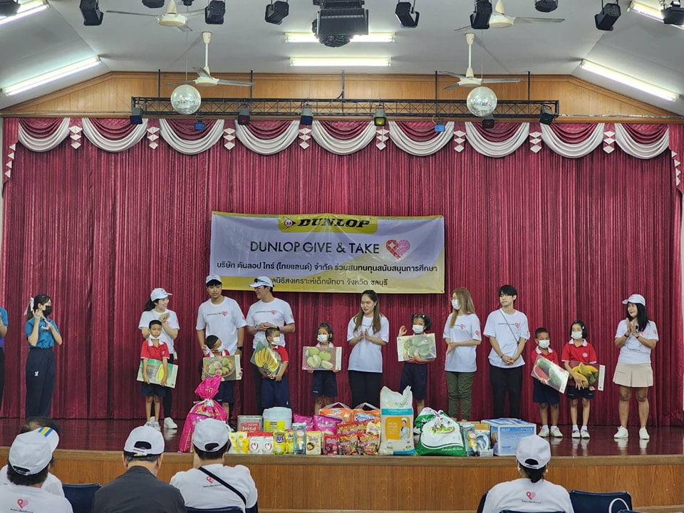 คณะผู้บริหารและทีมงาน ดันลอป ไทร์ (ไทยแลนด์) พร้อมด้วย ร้านค้าดันลอป ช็อป ร่วมทำกิจกรรม CSR ร่วมสมทบทุนบริจาคเงินสนับสนุนการศึกษา จำนวน 100,000 บาท พร้อมทั้งของใช้ต่างๆ ณ มูลนิธิสงเคราะห์เด็กพัทยา จ.ชลบุรี