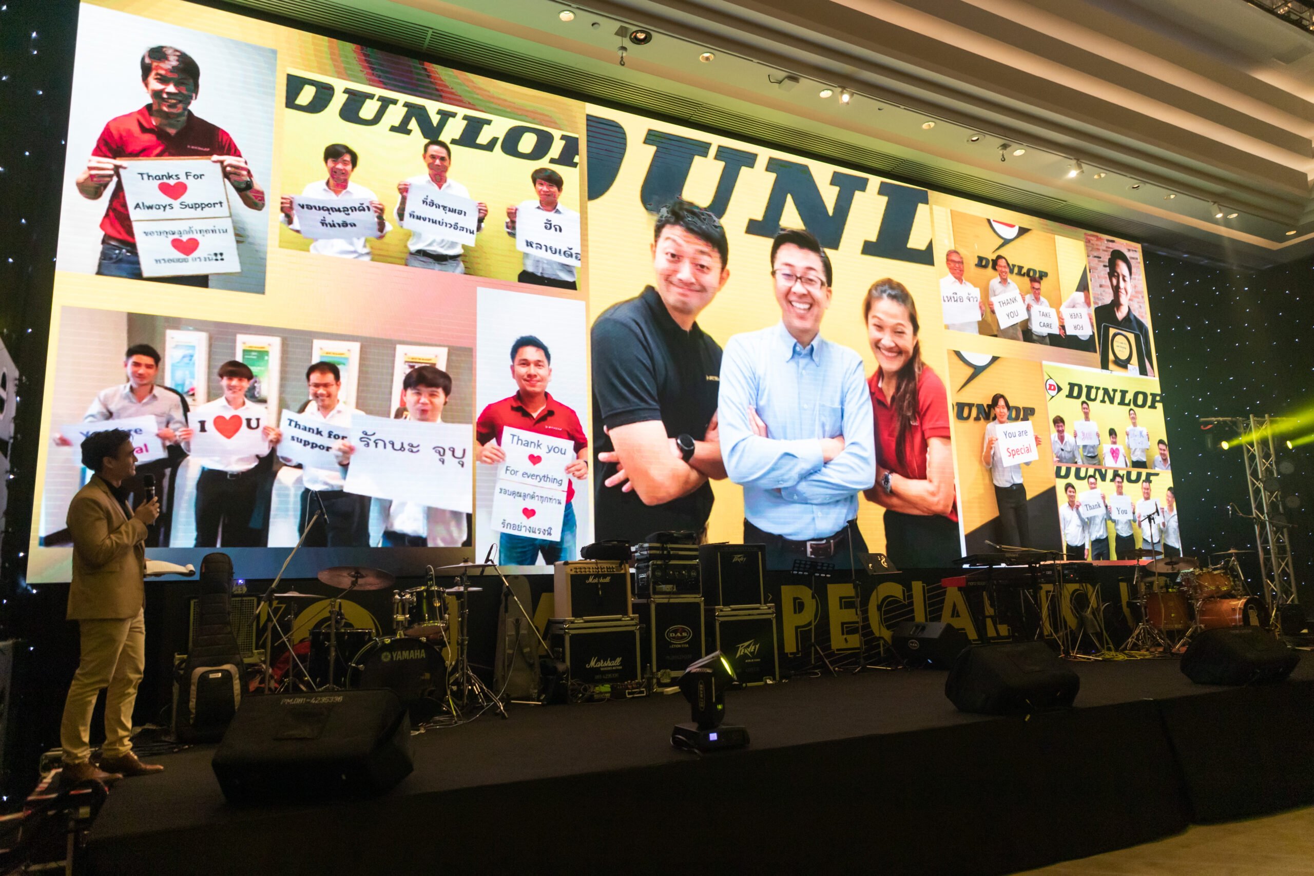 บริษัท ดันลอป ไทร์ (ไทยแลนด์) จำกัด นำโดยทีมคณะผู้บริหาร มร.ทาคาฮิโระ ทานากะ ประธาน คุณ พรพินันท์ พิสุทธิ์วัชระกุล กรรมการผู้จัดการใหญ่ และ คุณ โยชิฮิโระ โคได รองประธาน จัดงานเลี้ยงขอบคุณร้านค้าตัวแทนจำหน่ายยางรถยนต์ดันลอปทั่วประเทศ ภายใต้คอนเซป เพราะคุณคือคนสำคัญ “You are special to us” เพื่อเป็นการขอบคุณที่ได้มอบความไว้วางใจ และให้การสนับสนุนในการจัดจำหน่ายยางรถยนต์ดันลอปมาโดยตลอด ณ โรงแรมคอนราด กรุงเทพมหานคร